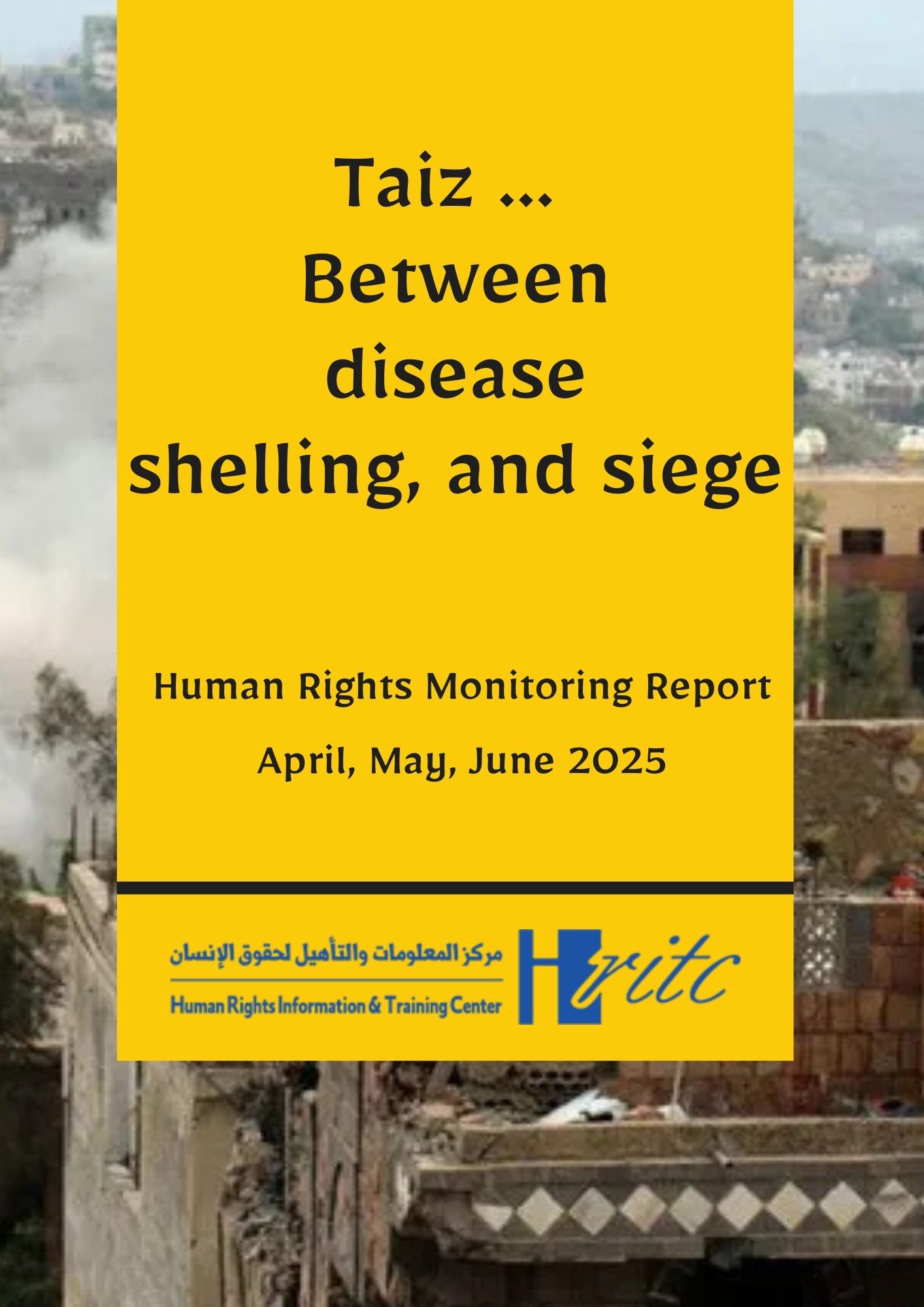 This report, issued by the Human Rights Information and Training Center (HRITC), presents the humanitarian situation and the reality of human rights in Taiz governorate during the months of April, May, and June 2025, a period characterized by the escalation of civilian suffering as a result of the continuation of the siege imposed by the Houthi militias on the city for the tenth year in a row.